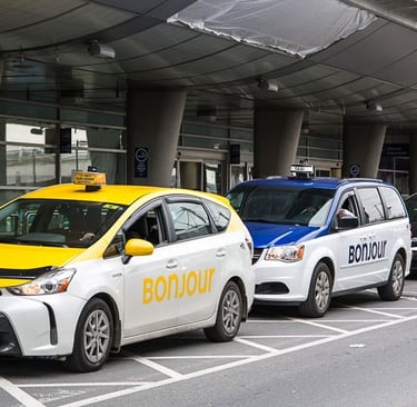 Nos taxis en action à Montréal, prêts à vous servir 24h/24.